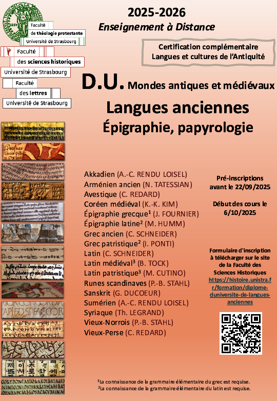 DU Mondes Antiques et médiévaux, Langues Anciennes, Epigraphie et Papyrologie – 2025-20266